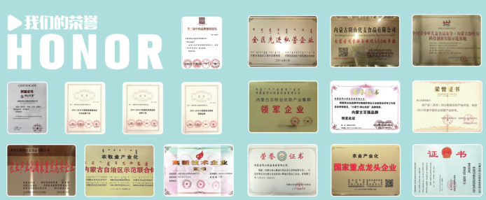 憑借過硬的綜合實力,陰山優(yōu)麥先后被國家及自治區(qū)有關(guān)部門評定為“國家高新技術(shù)企業(yè)”、“農(nóng)業(yè)產(chǎn)業(yè)化國家級重點龍頭企業(yè)”,并榮獲“亞洲名優(yōu)品牌獎”、“中國品牌年度創(chuàng)新企業(yè)”、“中國燕麥健康食品行業(yè)品牌十強”等殊榮。